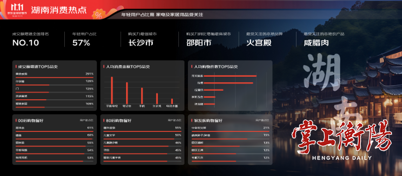 在刚刚结束的双十一狂欢节中,衡阳本地30余家企业参与的京东中国特产·衡阳馆活动中,上架的黄花菜、南岳腐乳、渣江米粉等地方特产受到了全国各地消费者的热烈喜爱。据京东的消费数据显示,湖南省在此次活动中的成交额增速全国排名第十,显示出强劲的消费增长势头。